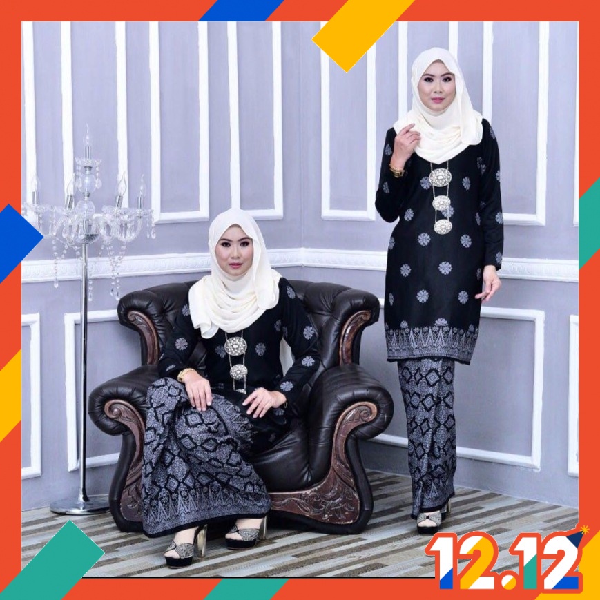 Baju Kurung Moden Songket Bunga Tabur Printed Black Plus Sedondon Baju Raya Mak Dan Anak Hitam Saiz Besar Sz 36 48 Shopee Malaysia